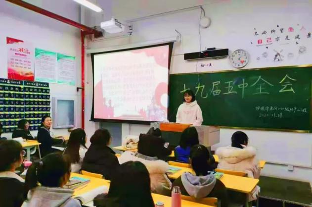为进一步贯彻落实十九届五中全会精神确定的战略举措,与新时代使命任务结合起来,保持共青团员的先进性,加强大学生思想政治教育,护理学系助产2002班于11月28日在五龙20教举办 “认真学习贯彻党的十九届五中全会精神”团课活动。