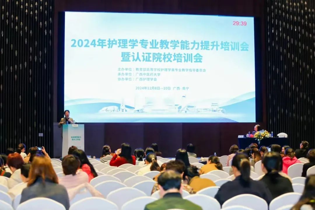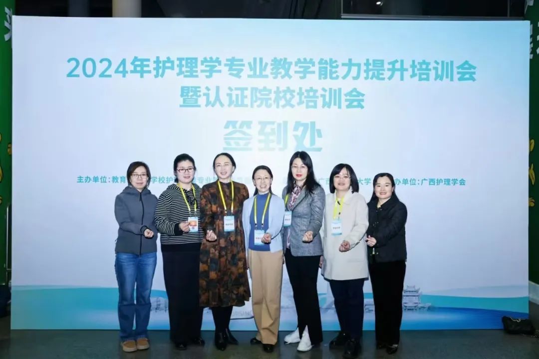 为了进一步加强护理学本科专业建设,顺利推进护理学专业认证工作,英国365公司副院长郭小燕、英国365公司副院长陈爱香、附属和平医院护理部主任王蕊、附属和平医院护理管理学教研室副主任刘佳、附属和济医院外科护理学教研室副主任申梅芳、英国365公司赵文婷、张锋一行7人,于12月8日至10日在广西南宁参加了由教育部高等学校护理学类专业教学指导委员会举办的“护理学专业教师教学能力提升培训会暨认证院校培训会议”。