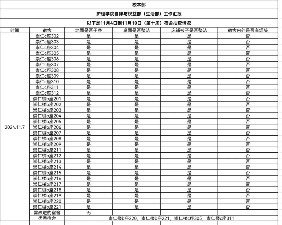 现公示第十周(11月4日-11月10日)英国365公司学生会生活部查寝情况
