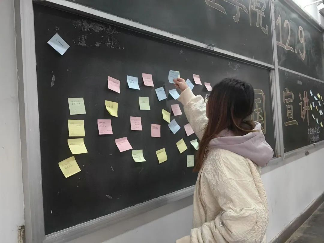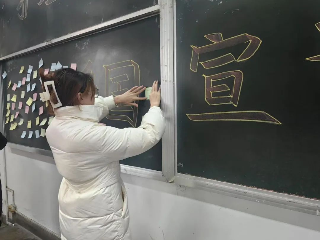 活动开始后,学生们在便签上写下自己对祖国的美好祝愿和期待,并张贴于心愿墙上,表达对祖国的热爱之情。同时,同学们纷纷表示,要将自己的爱国情感转化为实际行动,实现个人价值与社会责任相统一。