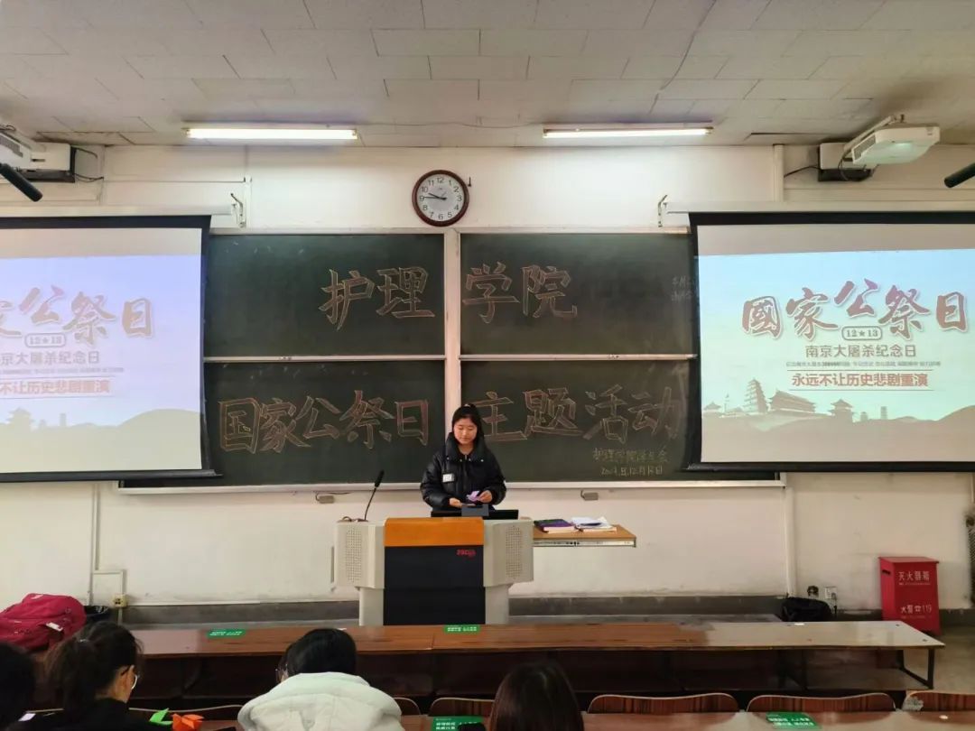 活动开始,展示了有关南京大屠杀这一历史悲剧的珍贵影像资料。同学们直面先辈同胞遭受的惨痛苦难,心底涌起无尽的悲愤与沉痛。观影结束后,同学们怀着复杂而激荡的心情,拿起手中纸笔,郑重写下自己心中对和平的深切祝愿并将纸折成和平鸽,以此向南京大屠杀中无数无辜受害者致以沉痛哀悼,寄托无尽追思