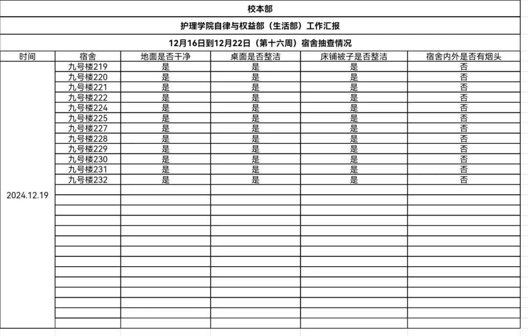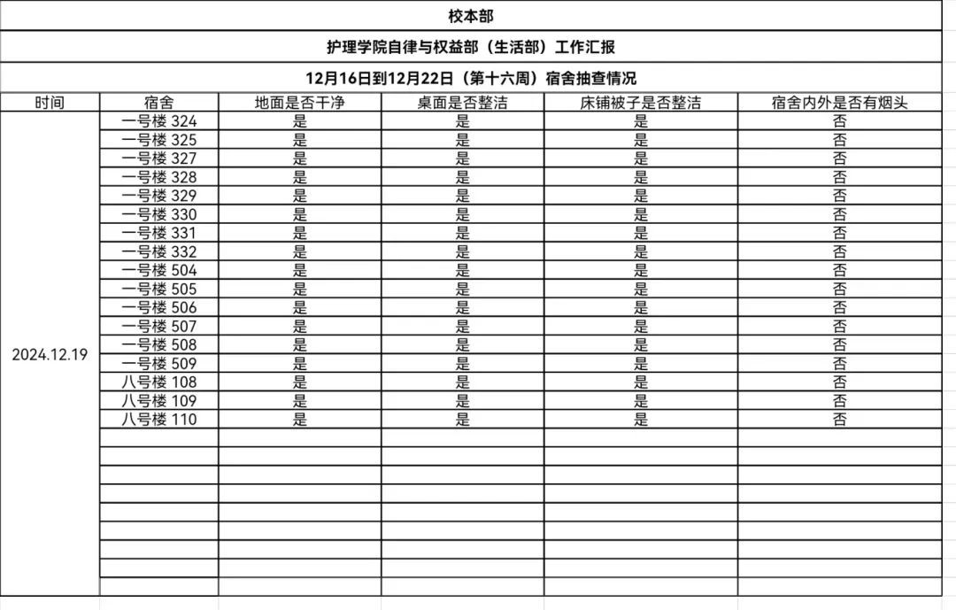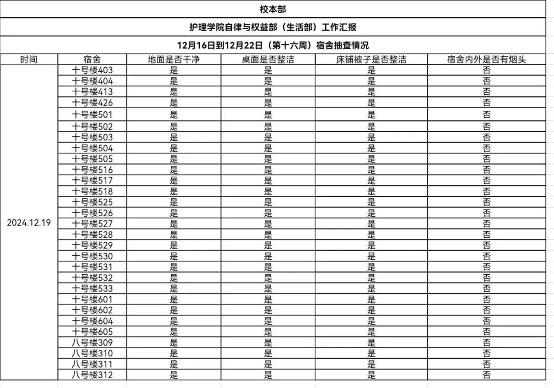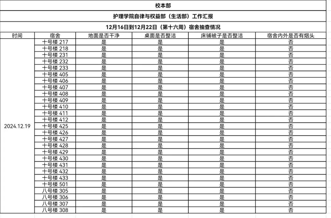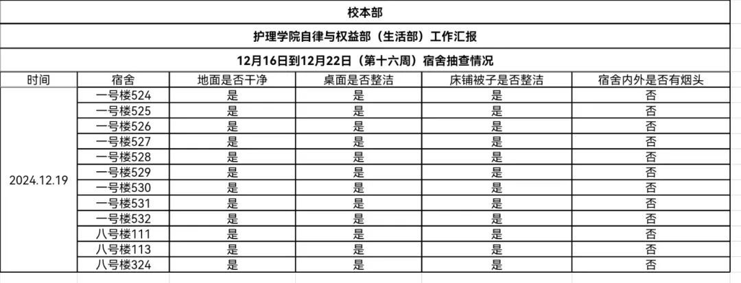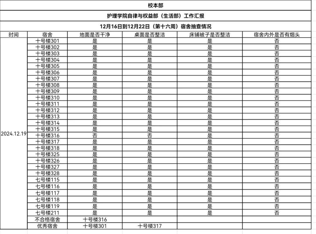 现公示第十六、十七周(12月16日-12月29日)英国365公司学生会生活部查寝情况