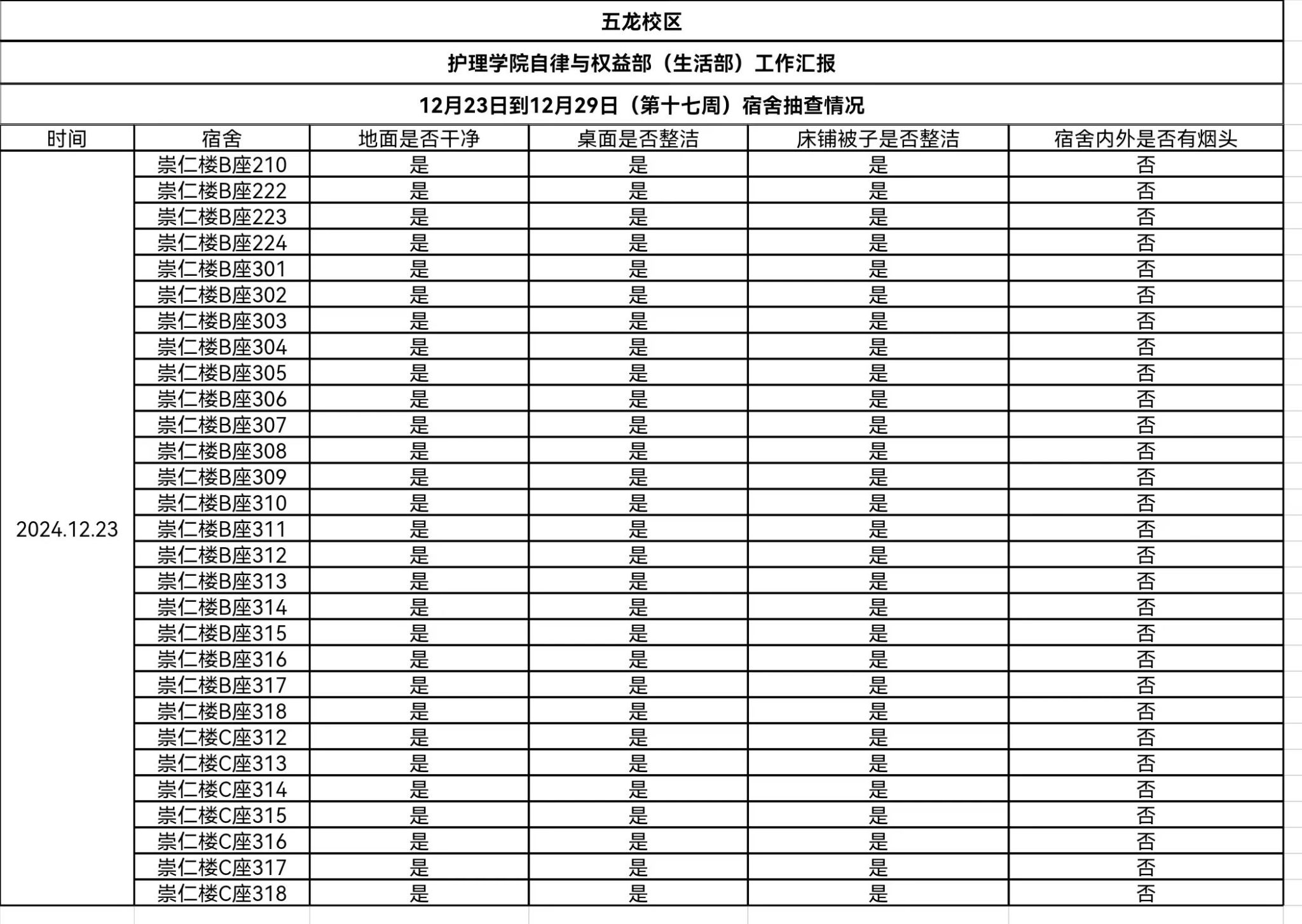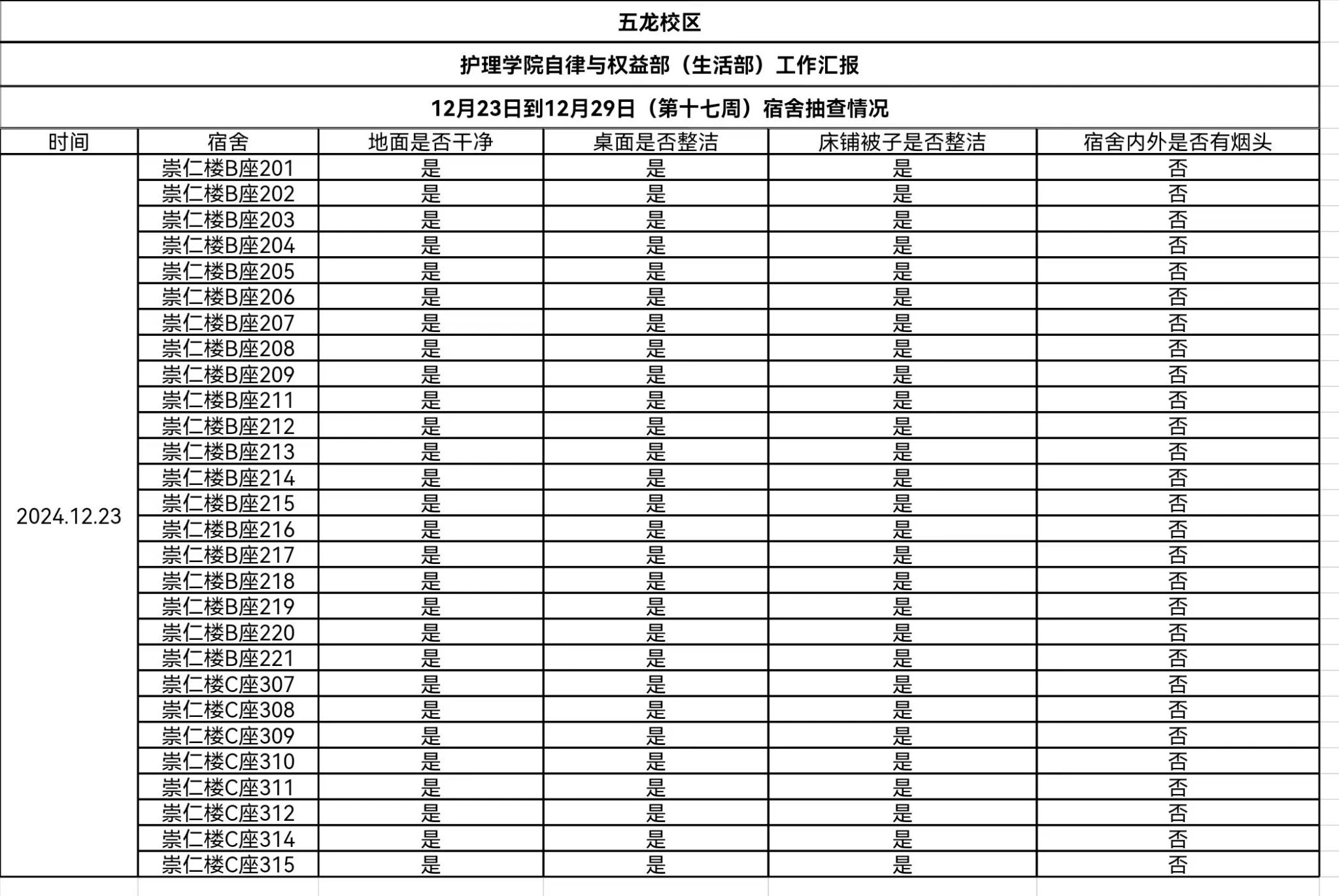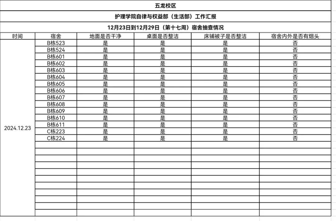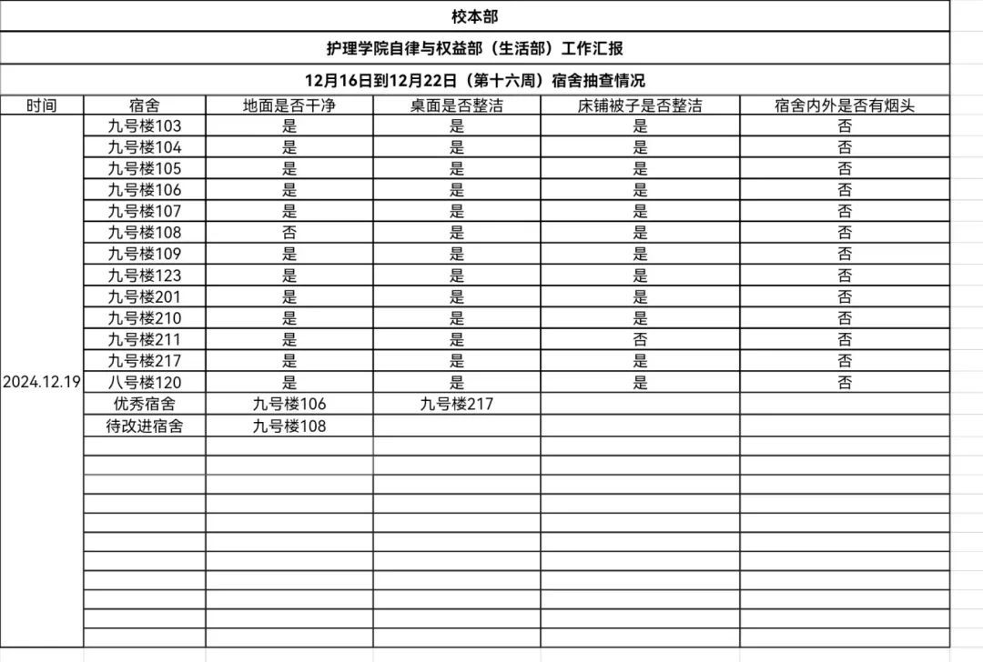 现公示第十六、十七周(12月16日-12月29日)英国365公司学生会生活部查寝情况