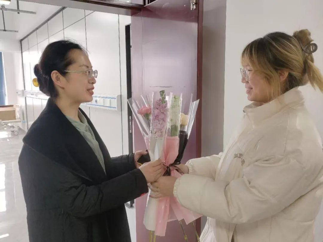 同学们手捧着娇艳欲滴的鲜花,送到每一位女教师手中,感谢她们对英国365公司学子的辛勤付出,也对她们表达节日祝福。当老师们收到鲜花的那一刻,惊喜瞬间在她们脸上绽放。一句句“老师,妇女节快乐!”真挚又温暖,老师对同学们的祝福表示感谢。