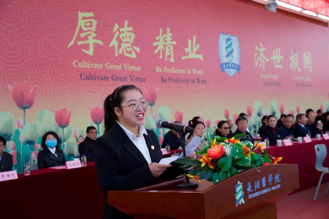 校友代表、天津市蓟州区人民医院党委委员李岩,向母校汇报了自己的情况,向学弟学妹们送上了美好祝福。他追忆了在长医求学的美好时光,分享了自己的求学、工作感悟,希望大家做好未来规划,博观而约取,厚积而薄发,让奋斗成为青春最亮丽的底色。