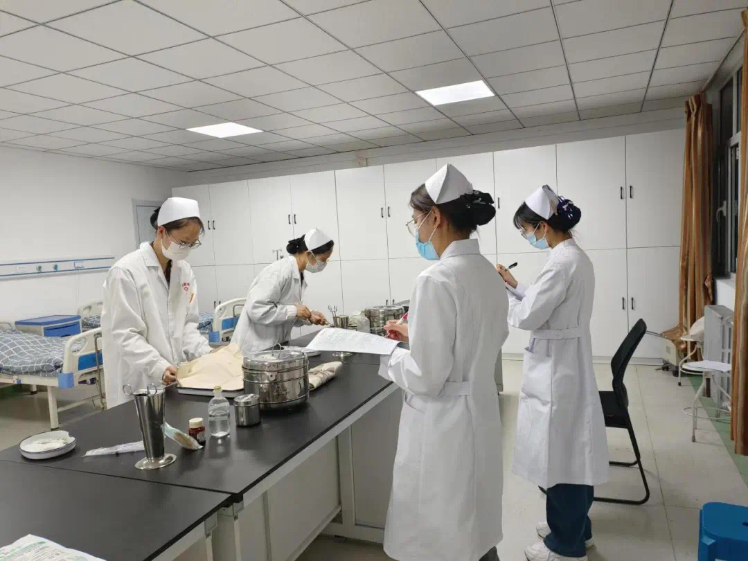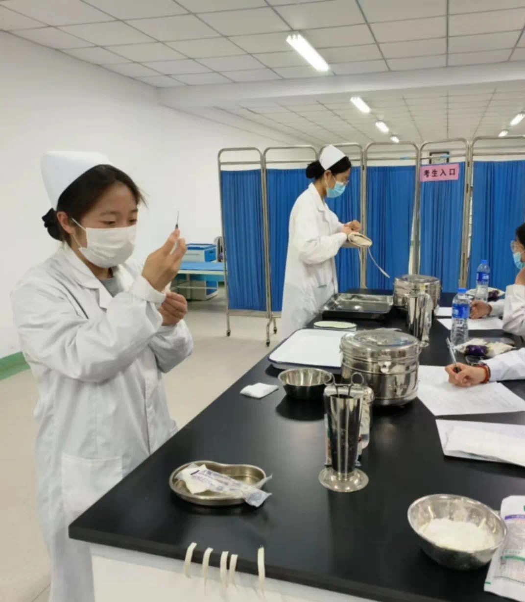 比赛开始,参赛选手们在用物准备,个人准备,环境准备完成后,开始实操演练。经过评委对每位选手全方位考核和严格评估,最终24名学生入选复赛。