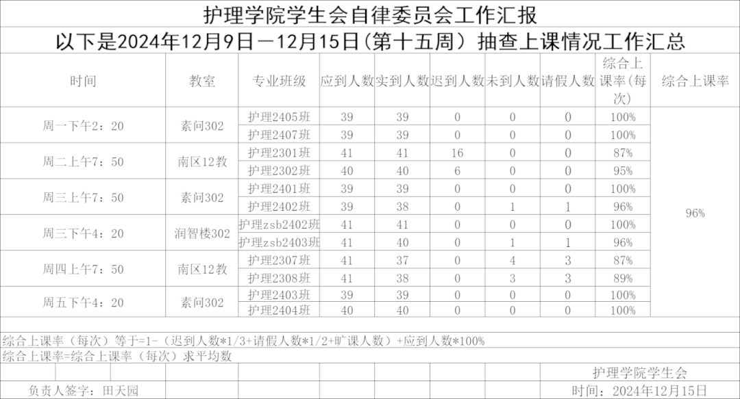 现公示第十五周(12月9日-12月15日)英国365公司学生会自律委员会查课迟到情况。