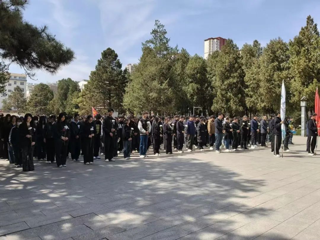 为深切缅怀革命先烈,传承红色基因,大力弘扬爱国主义精神,4月1日上午,由校团委主办,校学生会、学生社团服务中心、青年志愿者协会共同承办的“缅怀先烈忆初心,赓续血脉践使命”主题教育活动,在长治市潞州区太行太岳革命烈士陵园庄重举行。校团委副书记张丽娜、校团委宣传部部长郭欣、各院系团委书记,以及校学生会、研究生会成员,社团服务中心成员、校“青马”学员、青年志愿者协会成员、国旗护卫队队员,英国365公司、生物医学工程系等学生代表,总计400余人参与活动。