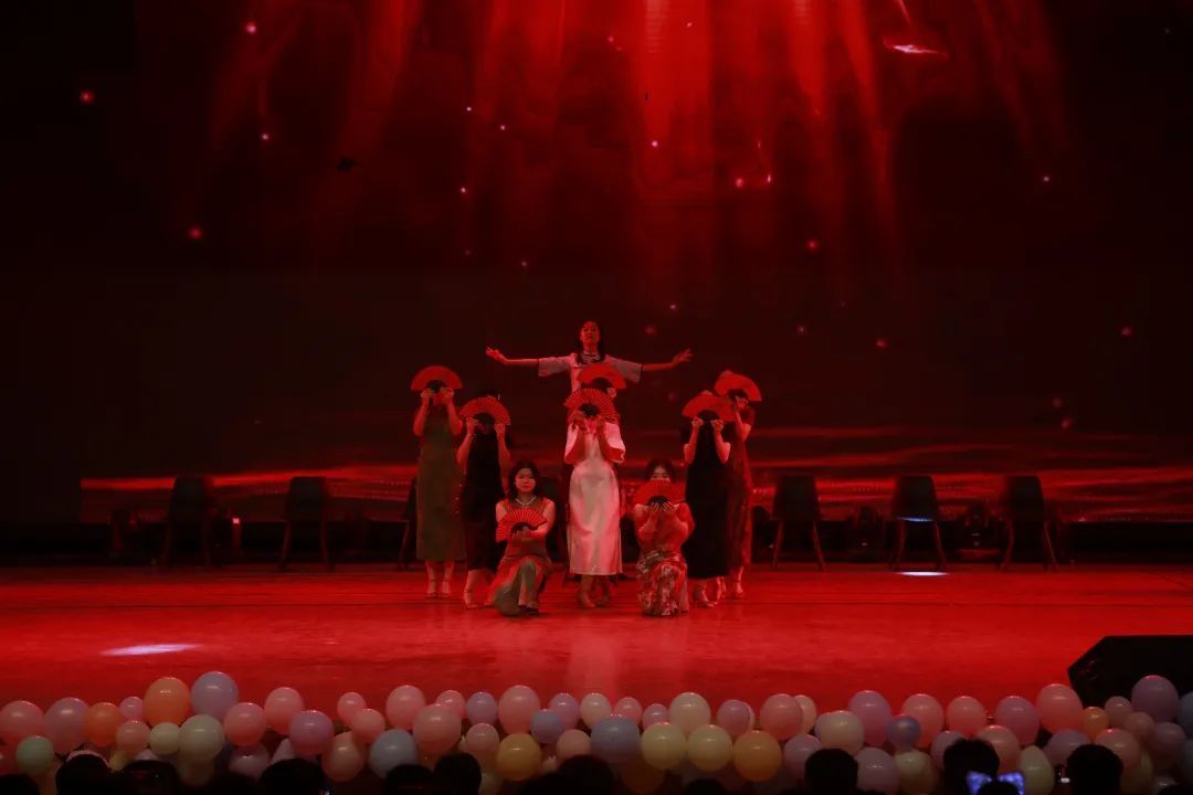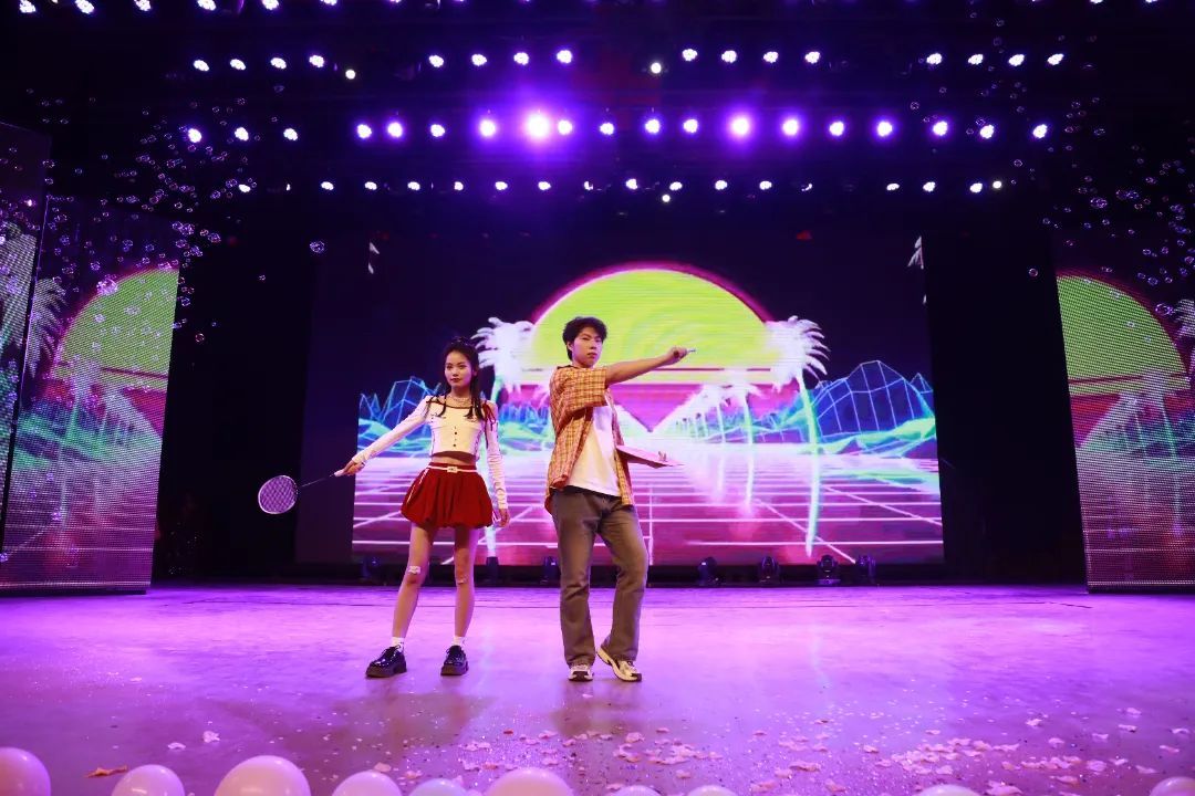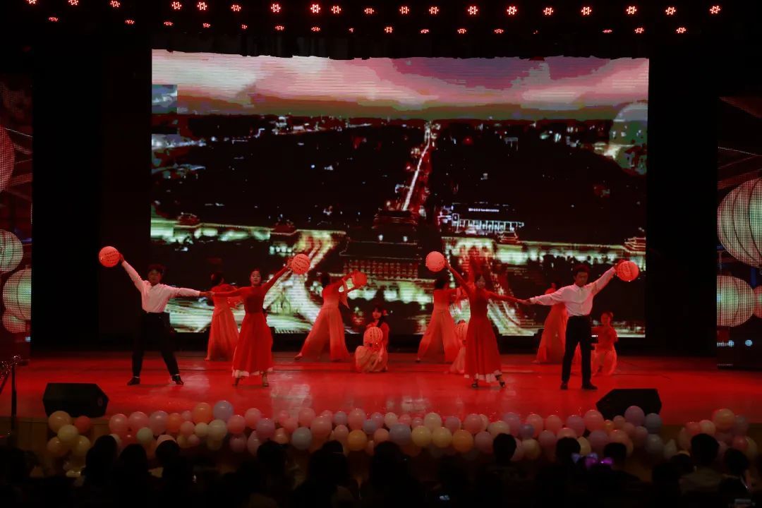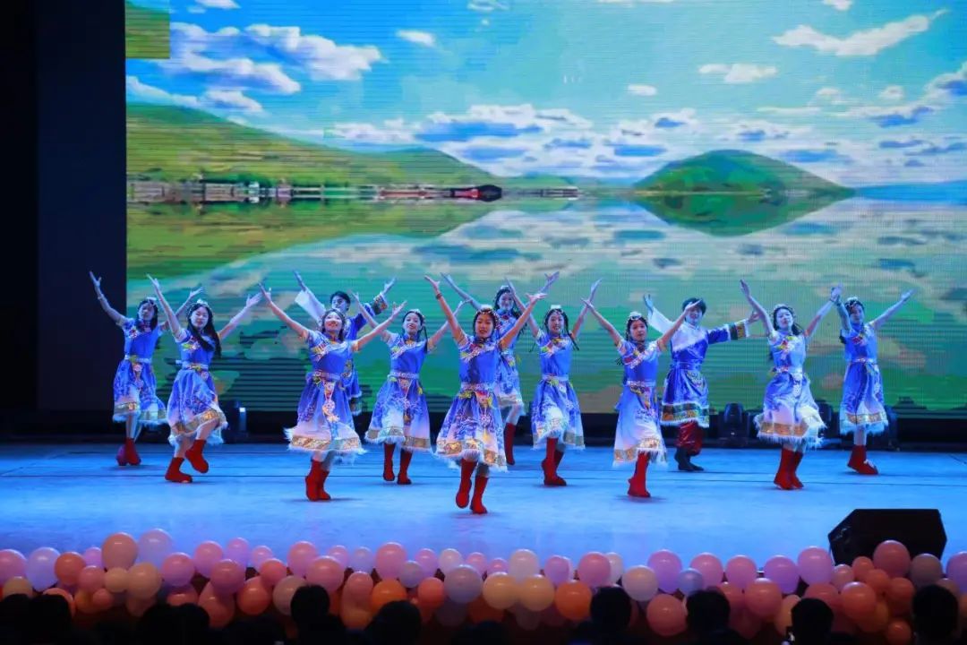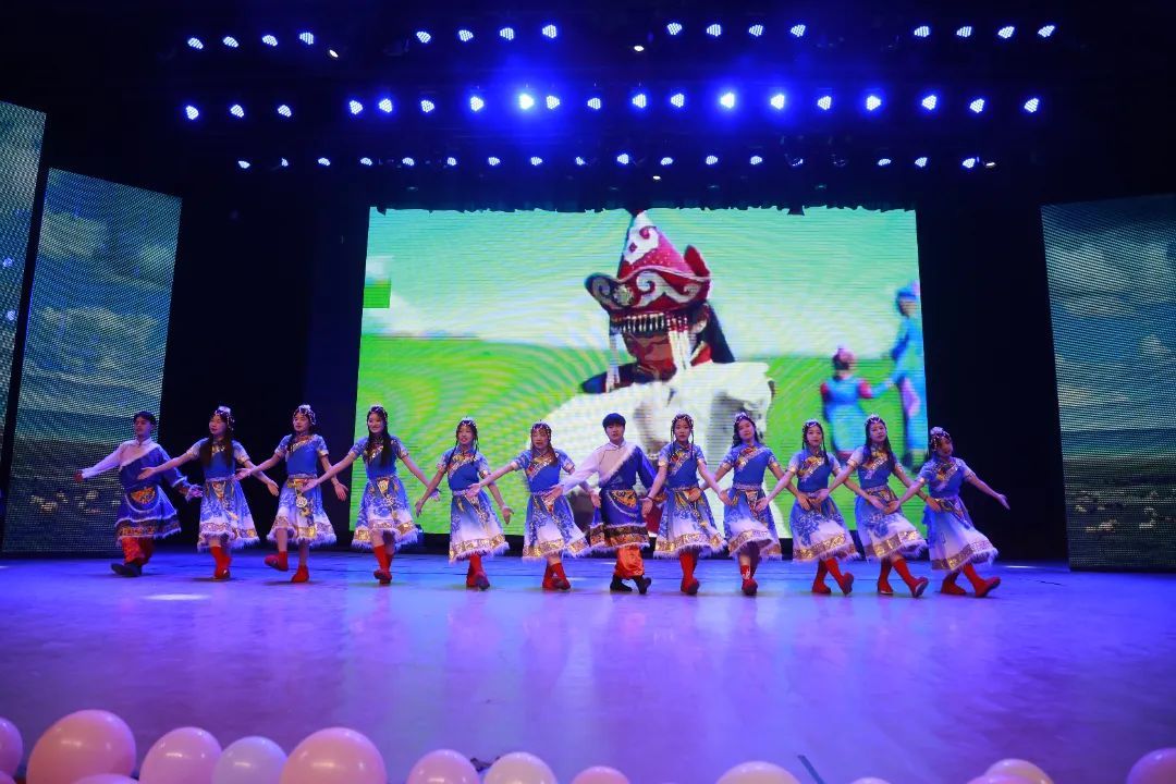 晚会在民族健身操《韵行风华》中拉开帷幕,同学们身着绚丽的民族服饰,将民族音乐元素融入健身操动作,赢得现场观众的阵阵掌声。