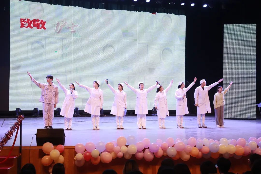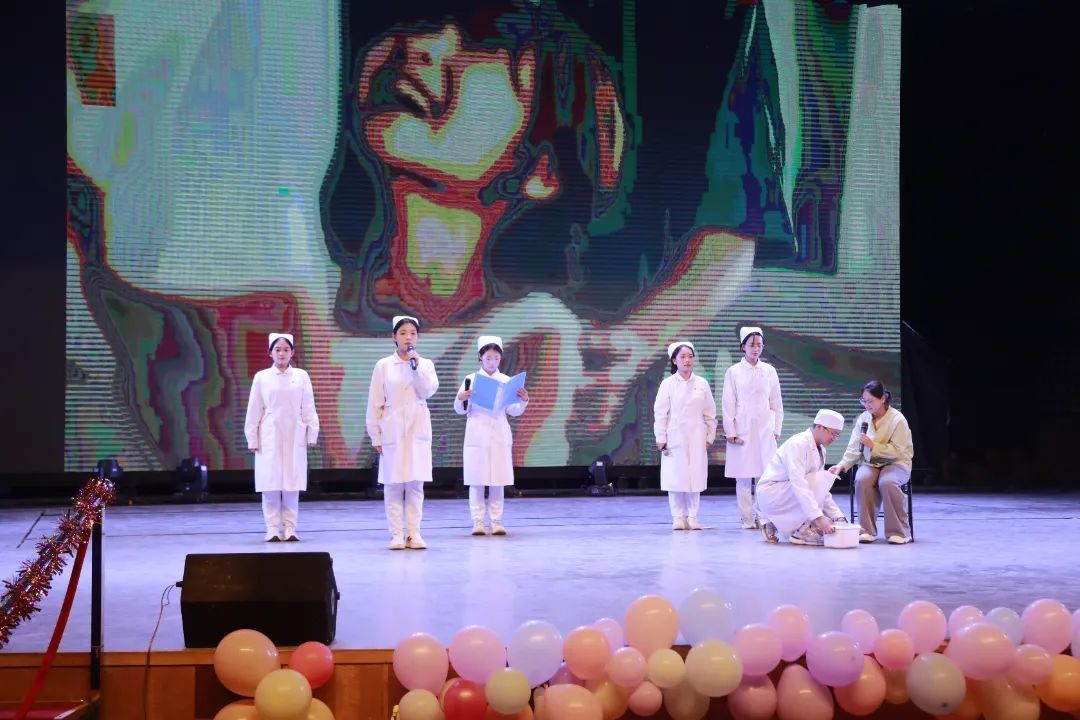歌舞《春暖花开》《灯火里的中国》、小品《体检警告》、舞蹈《金陵十三钗》《Jazz Medley》《如愿》、朗诵《护士礼赞》、英语配音《疯狂动物城》、T台秀《跃动奇境》以及情景剧《最是那一瞥的美》等节目精彩纷呈、高潮迭起,在展现护理工作者的青春活力之余,也生动演绎了护理工作者播种希望、传递温暖、坚守信念的奉献精神。
