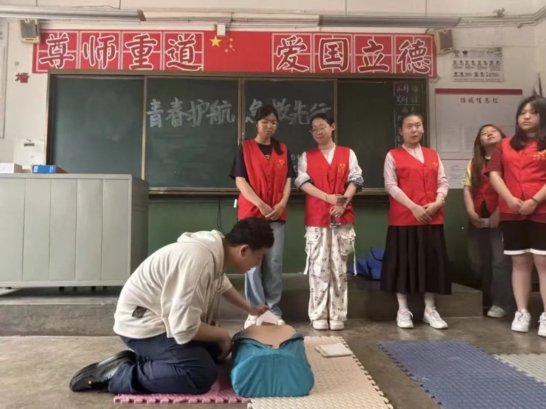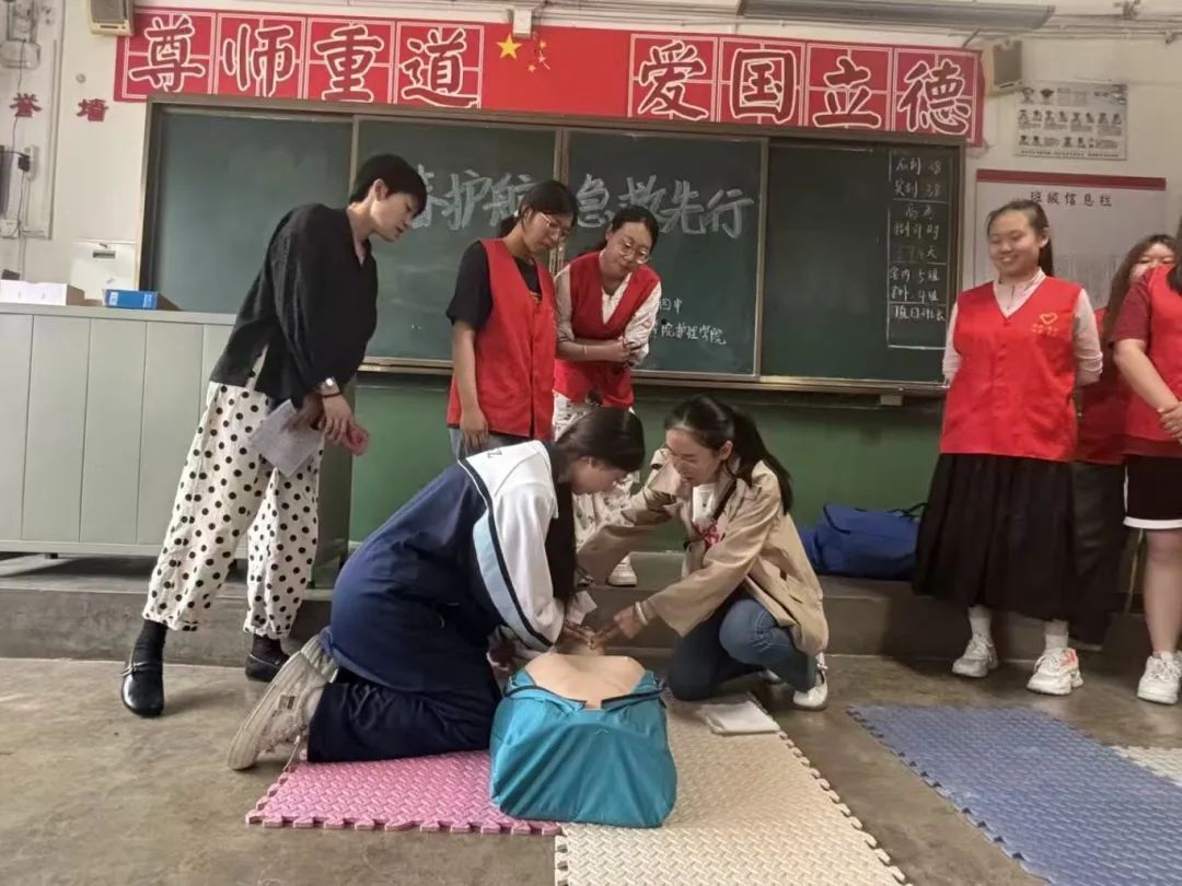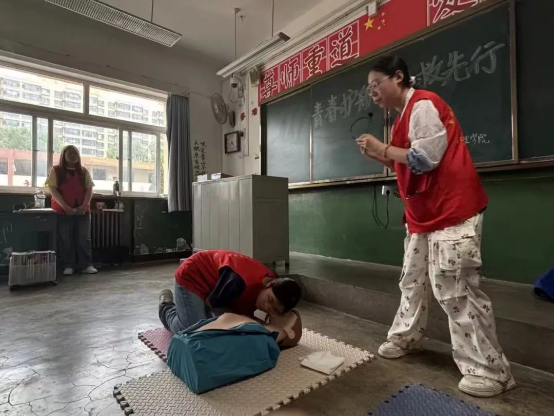 活动中,志愿者用通俗易懂的语言为在场同学们讲解心肺复苏的原理、操作流程以及关键要领,并使用训练模型为同学们演示了心肺复苏的完整操作流程。在实操环节中,四中的学生们进行分组踊跃参与,师生团队对其进行动作指导,现场气氛热烈。