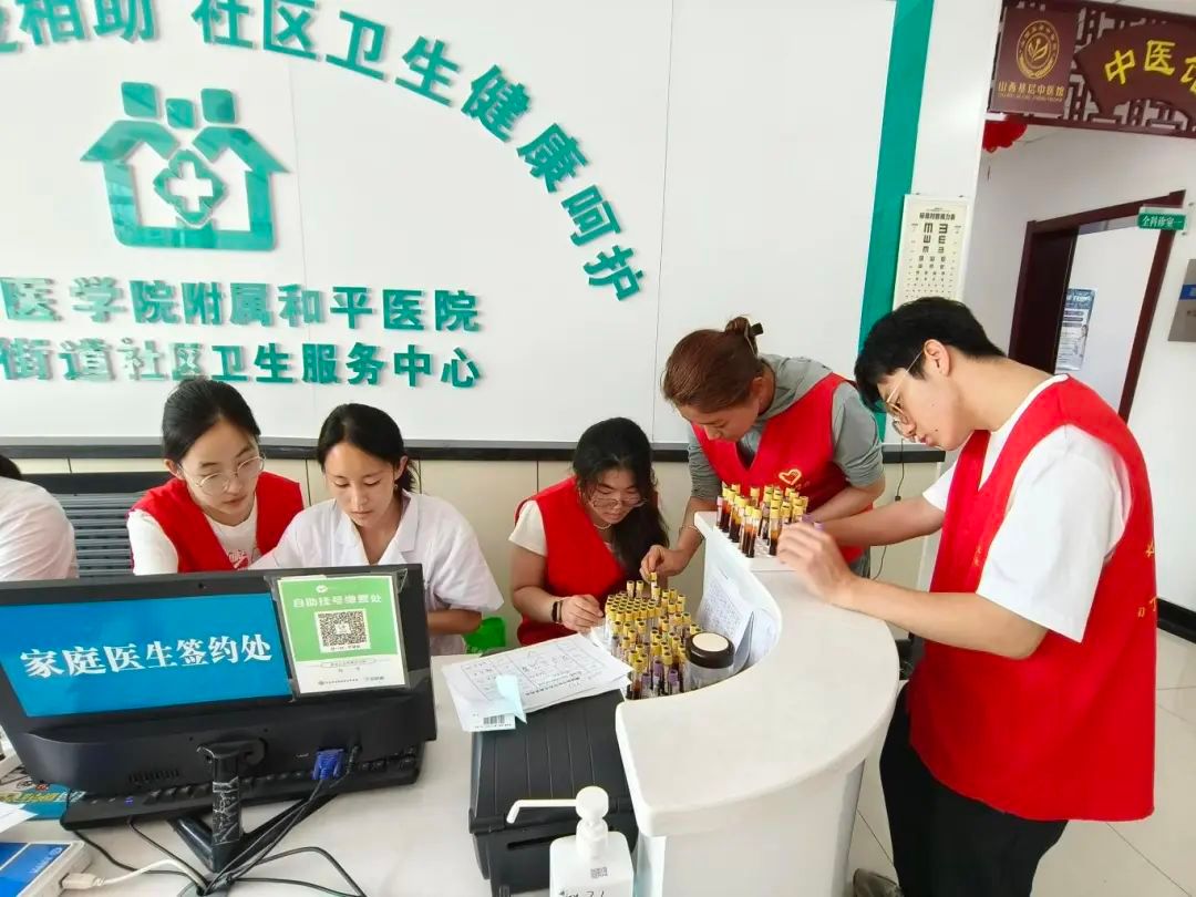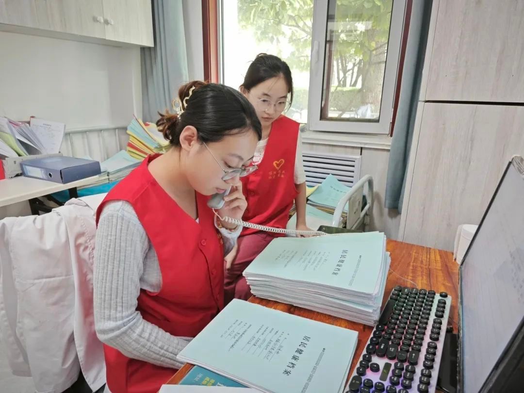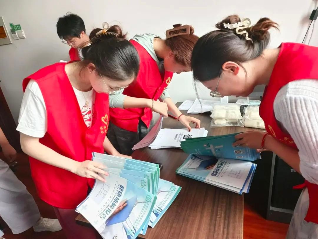 抵达社区医院后,队员们迅速按照分工投入工作。他们认真核对信息,建立居民健康档案,重点完成早产儿专项档案建设;通过电话耐心通知居民体检,并协助检验工作,严谨录入血标本信息。下午,队员们有序分发体检报告,为居民解读指标;同时在档案整理过程中,主动筛查未检居民并逐一提醒,及时完成体检结果录入。