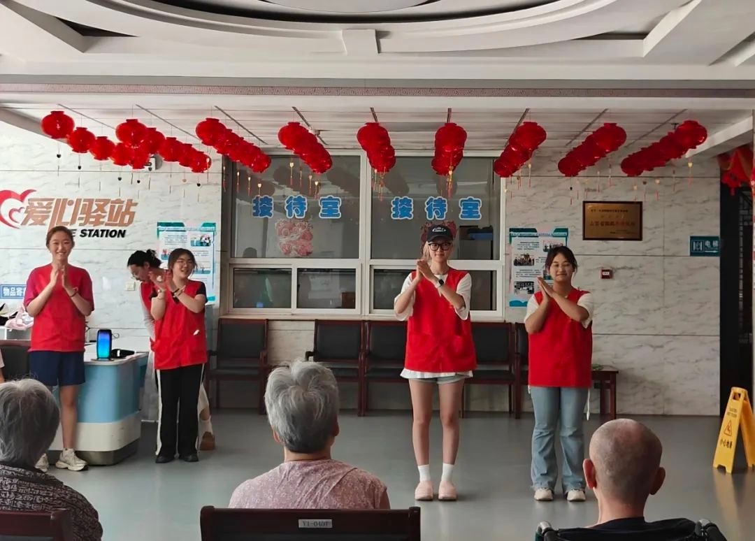 队员们依次献上《没有共产党就没有新中国》《在太行山上》等经典红歌,轻快的《桃花一朵朵》《明天会更好》配合青春舞步,为现场注入活力。同时,队员们细心为老人修剪指甲,并围坐一起,聆听抗战往事与人生智慧,让他们从岁月长河中汲取到爱国奉献的精神力量。