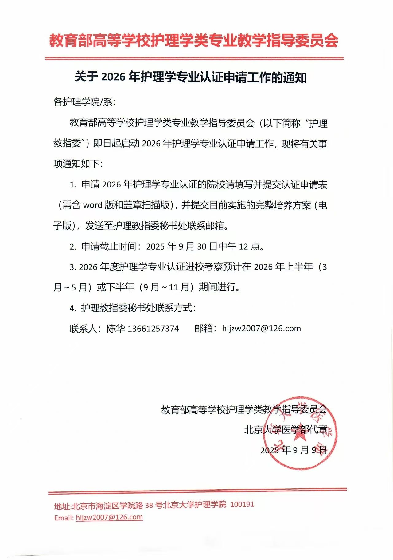 关于2026年护理学专业认证申请工作的通知