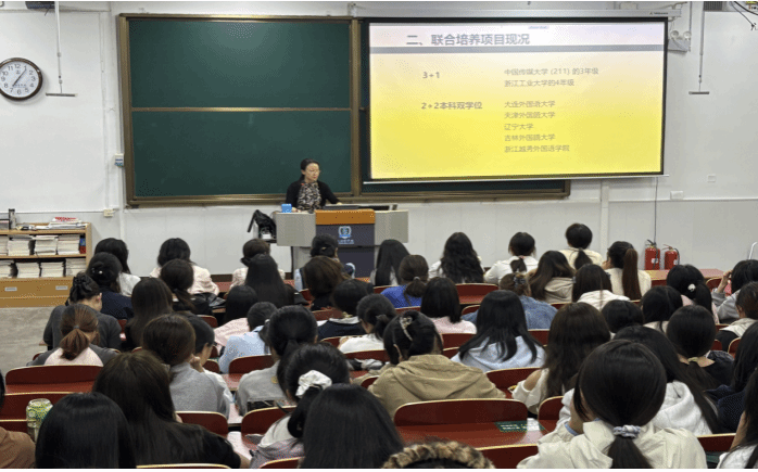 接着,陈爱香对日本城西国际大学基本情况、联合培养的整体架构、双方合作意向的核心内容、合作进程及未来工作计划等维度进行介绍,对于师生最为关注的合作细节,如学制安排、学位授予标准、费用情况、语言要求及学分互认规则等问题,逐一进行细致讲解,为我院学生规划学业提供了清晰的政策依据。
